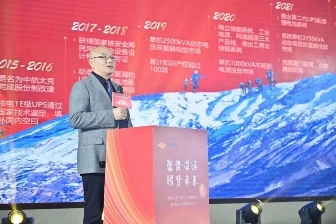 中航太克董事长陈文全先生发表了新年致辞,“在此我谨代表中航太克董事会,向过去一年来,为公司的稳步发展做出贡献的每一位同仁,表示衷心的感谢!在2023年里,希望各位同仁们把握这波千载难得的发展风口,聚势谋远,铸梦未来,借势提升自我价值!最后,衷心祝愿大家新年快乐,阖家安康!”
