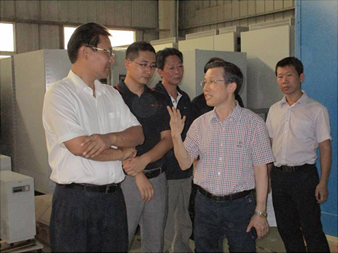 中航太克董事长陈文全、总经理谢富华陪同李主任一行参观了公司的UPS生产线及建设中的2号生产车间,并详细汇报了公司发展现状及未来的发展规划。