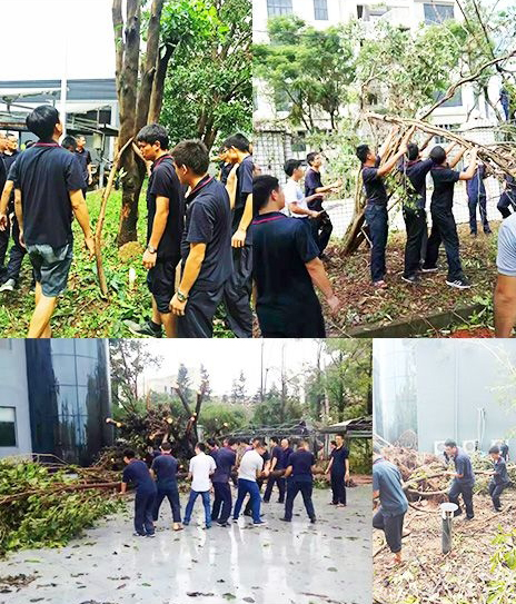 节后上班第一天,虽然公司电力尚未恢复,但所有员工都主动来到了公司,领导员工上下齐动手,清理树枝、树叶,扶植倾倒的树木,修葺破损的建筑,用了短短半天的时间,快速恢复了往日安全、整洁的环境。