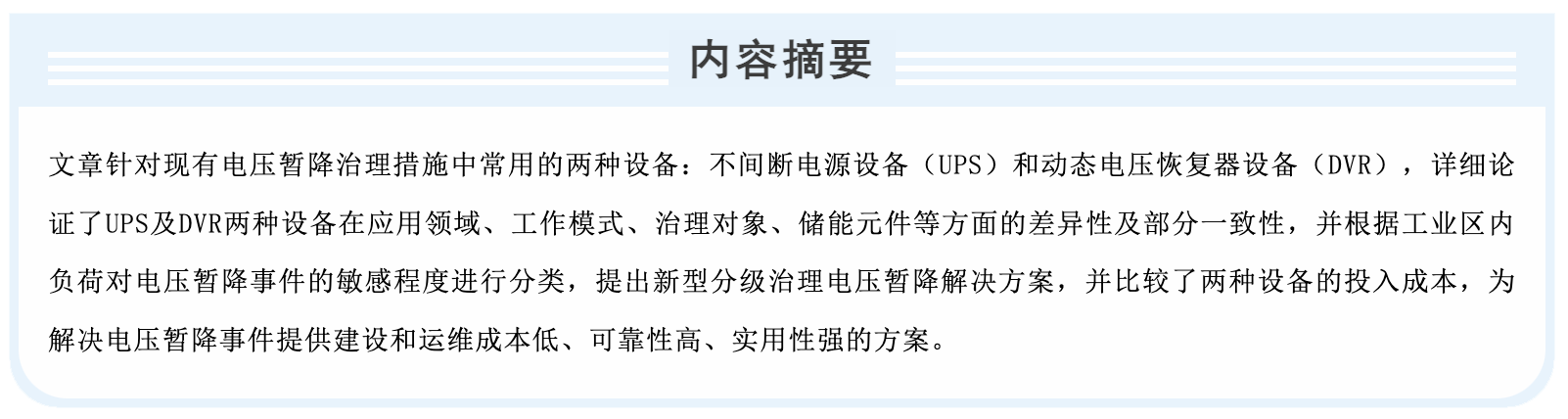 中航太克总工程师何春先生的《浅析UPS与动态电压恢复器》论文通过了专家评审,将被录入《第六届全国电能质量学术会议暨电能质量行业发展论坛论文集》,并安排在会场进行论文宣读。